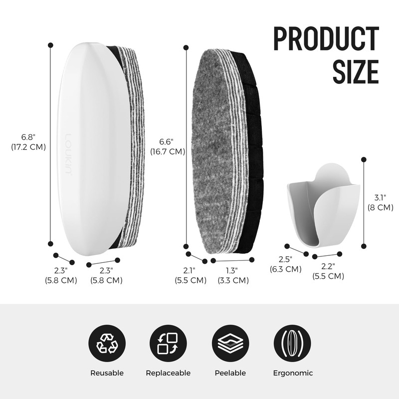 loukin Dry Erase Eraser with Replaceable Felt Pad, Whiteboard Eraser with 12 Peel-Off Layers, Magnetic Holder Includes, for Classroom, Home, and Office, White