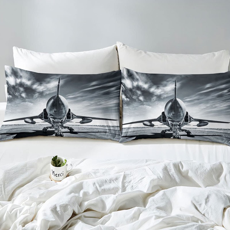 Loussiesd Boys Airplane Bed Sheet Set Kids Toddler Cool Aircraft Bedding Sheets Girls Teens Airplane Flying Bedding Fitted Sheet Grey Retro Bed Cover with 2 Pillowcases 3Pcs Bedding Double