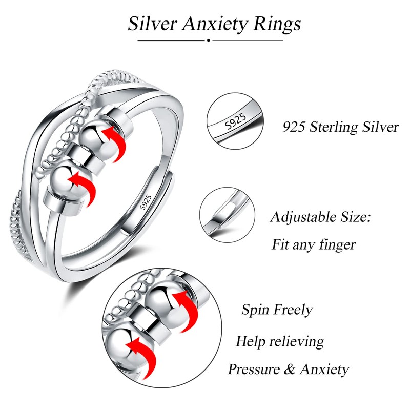 - Ideal gift: the anti-stress ring is positive and it works very well. If your son or daughter chews their thumb in nervousness, you can buy them an anti-stress ring. You will be amazed by the silver anxiety ring. The anti-anxiety ring is also perfect as a love gift for your wife, men, women, girls, mothers, girlfriends, sisters. The silver anxiety ring is an ideal and healing gift for everyday life or travel, work or parties.