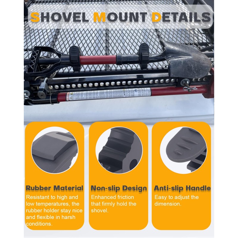 - Quick and Simple Installation: Shovel holder can be attached to any flat surface on your vehicle utilizing 3/16'' bolts (Drilling may be required) or can be installed on a round roll bar using straps. Quick release and stores out of the way