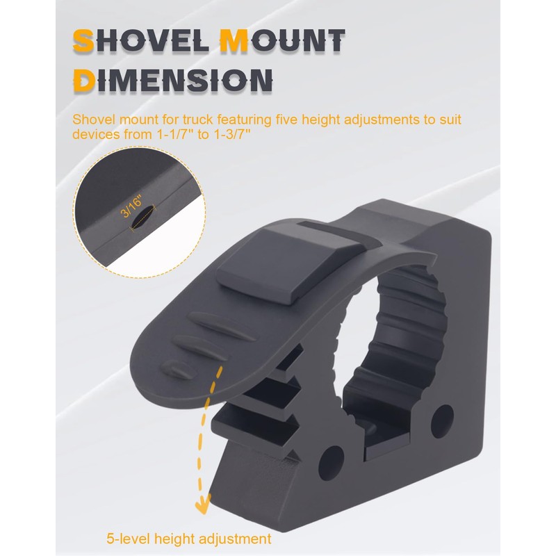 - Universally Applied: Shovel mount widely on work off-road vehicles, off road trucks, hunting trucks , ATV, UTV, RV, trailers, fire and police units, military equipment, 4x4s, boats, etc or on any wall.