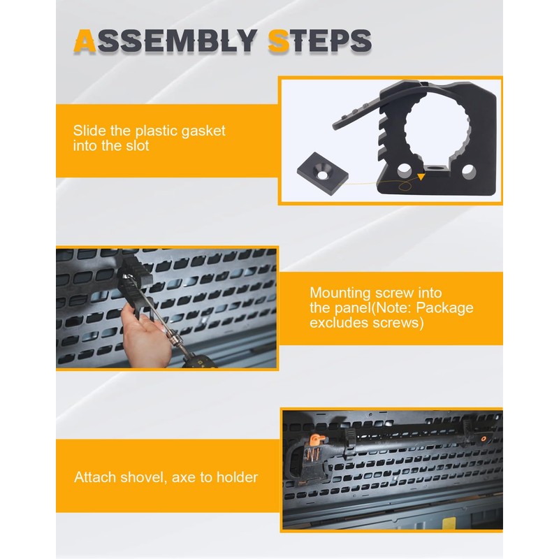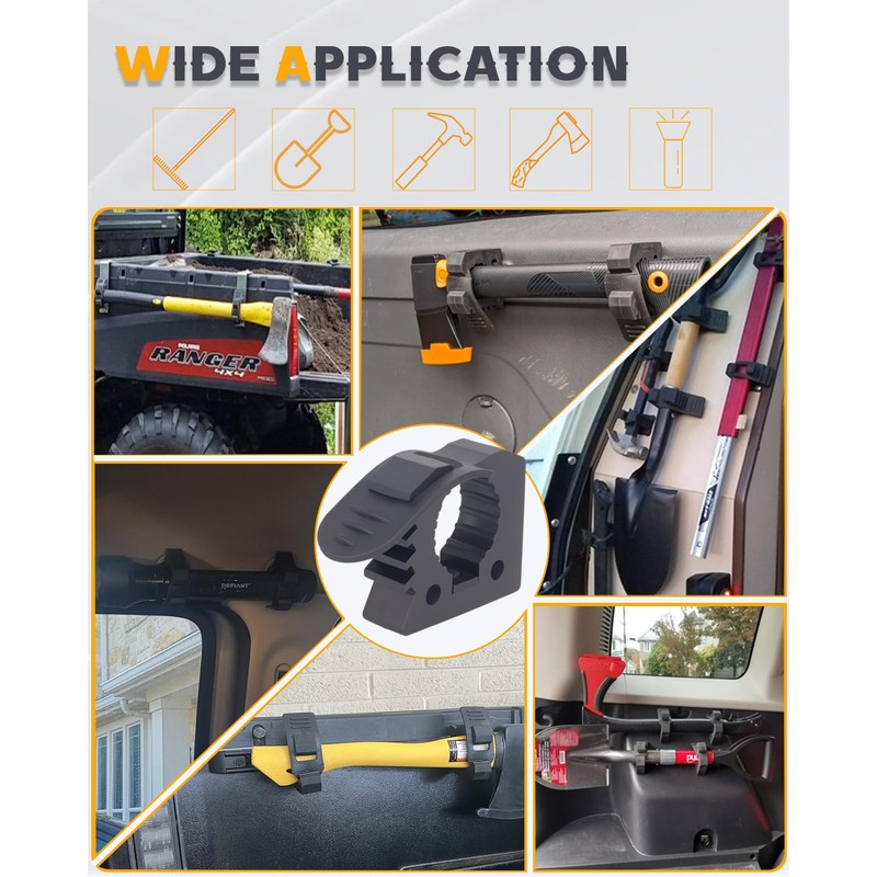 - Storage Solution: Quick-release mount is an excellent mounting solution for shovels, axes, hoses, fishing gear, flashlights and many other tools, can mount to molle panels, truck bed, bed rack, roof rack, cargo rails, and more...