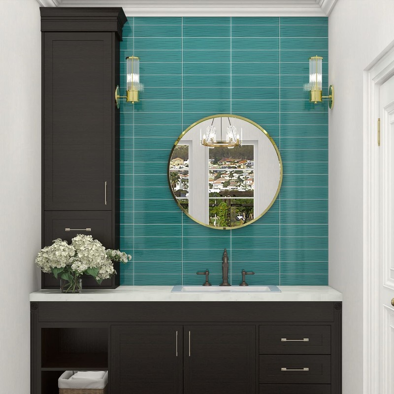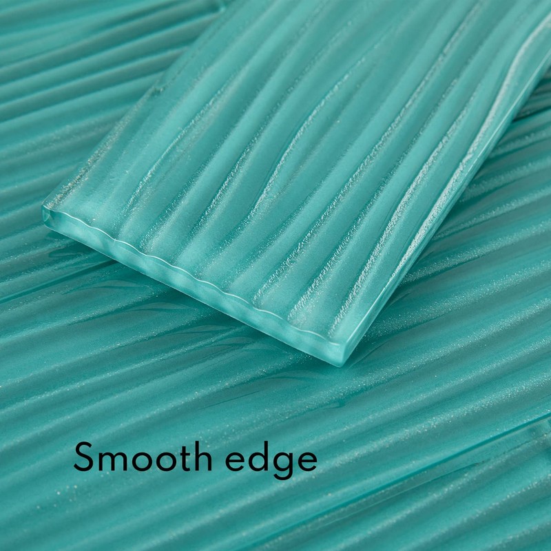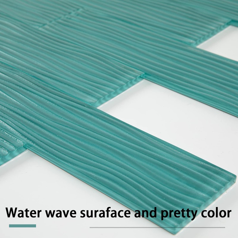 Lovdeco Aquamarine Water Wave Glass Subway Tile, 3 x 12 Inch, 4 Sq Ft, Backsplash for Bathroom Kitchen Wall, Green, 16-Pack