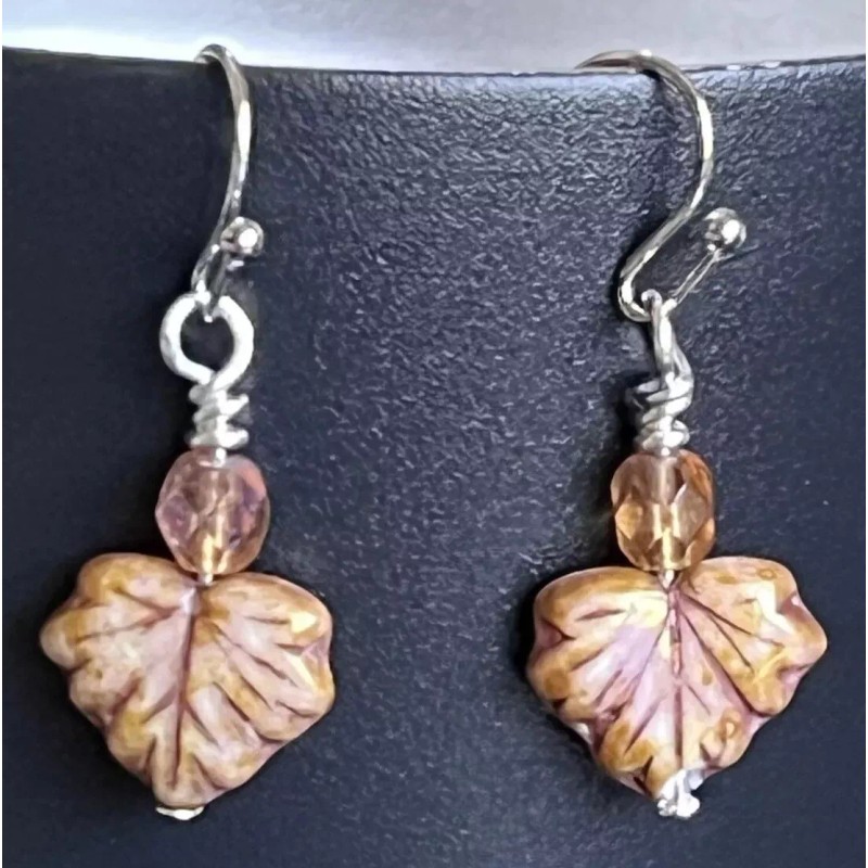 LOVE beads Silver with Opalescent Dusty Rose Leaves. Fall. Autumn