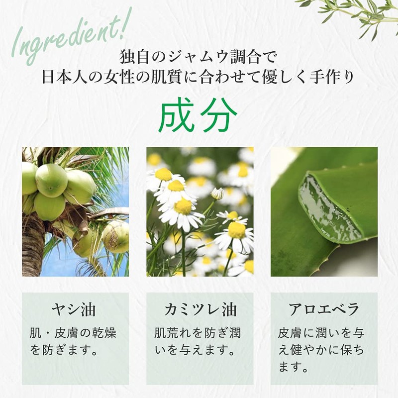 - [Manufacturing Method for Japanese Women’s Skin Quality] The love cosmetic jam soap is made with a traditional handmade method, such as the order of herb blend and the ratio of blending. Formulated with coconut oil which is said to clean skin with aloe, otaneninroze, or natural treatment. This soap is gentle and handmade in accordance with the skin texture of Japanese women, and aims to directly approach stubborn old exfoliata