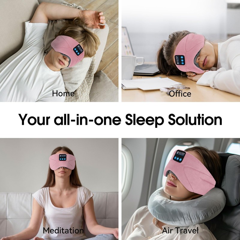 LOVE EYE Sleep Mask, Side Sleeper, Sleeping Mask with Bluetooth Headphones, 100% Opaque Eye Mask for Travel, Napping, Yoga, Meditation for Women and Men (Pink)