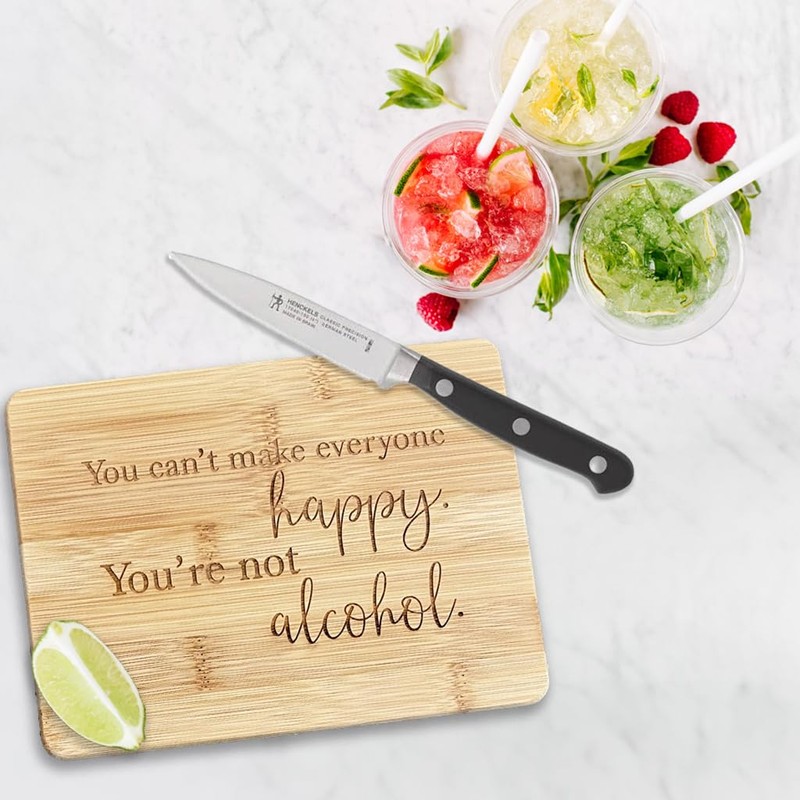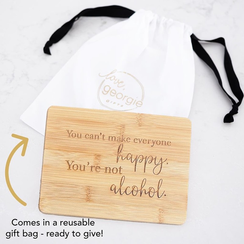 Love, Georgie "You can't make everyone happy. You're not alcohol." Bamboo Bar Board for Cocktail Fruits and Veggies. Small 6 x 8 Cutting Board. Funny Drinking Gift.