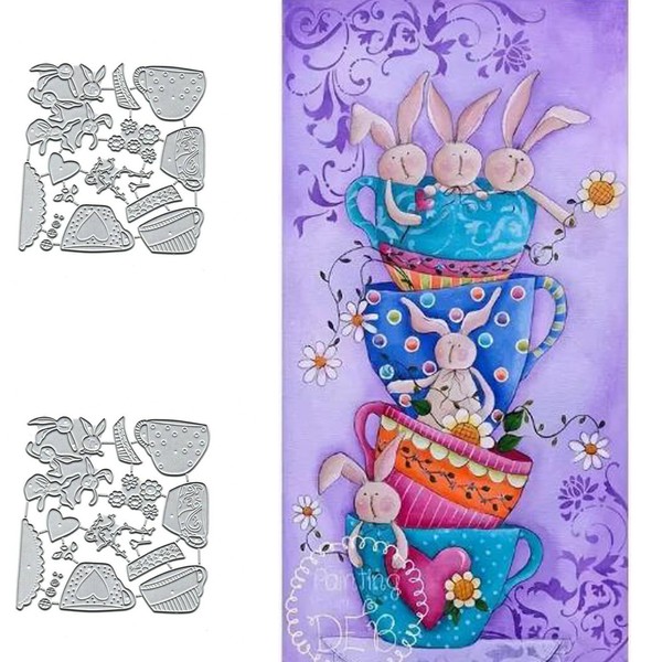 Love Heart Cup Metal Die Cuts for Card Making,Easter Rabbit Teacup Card Cutting Dies Cut Stencils DIY Scrapbooking Album Embossing Paper Card Embossing Craft