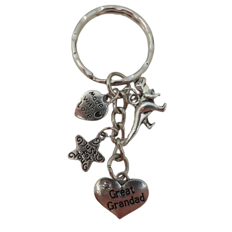 Love Heart Keyring Great Grandad Gem Charm Tyrannosaurus Rex Dinosaur Pendant