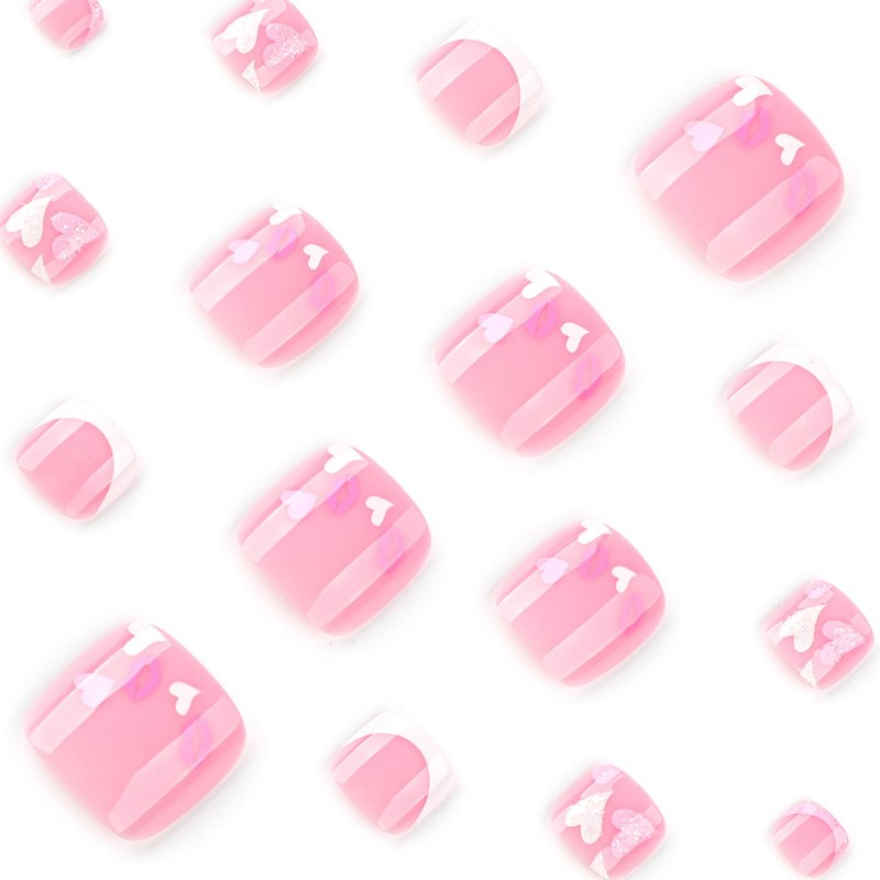 24 Pcs Heart French Tip Press on Toe Nails for Women Manicure Decorations