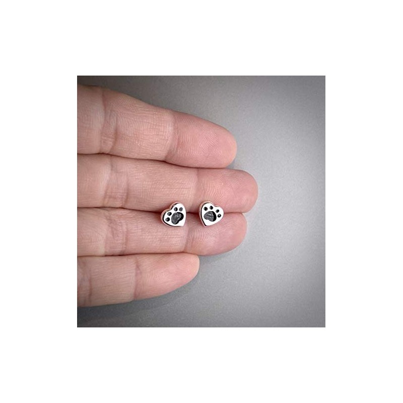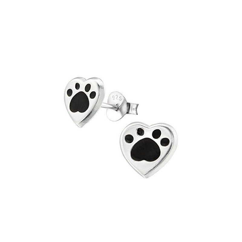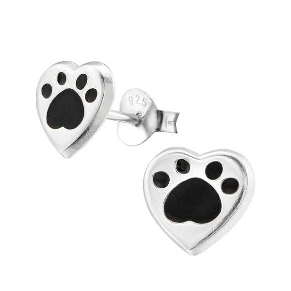 Love Heart Paw Earrings - Sterling Silver
