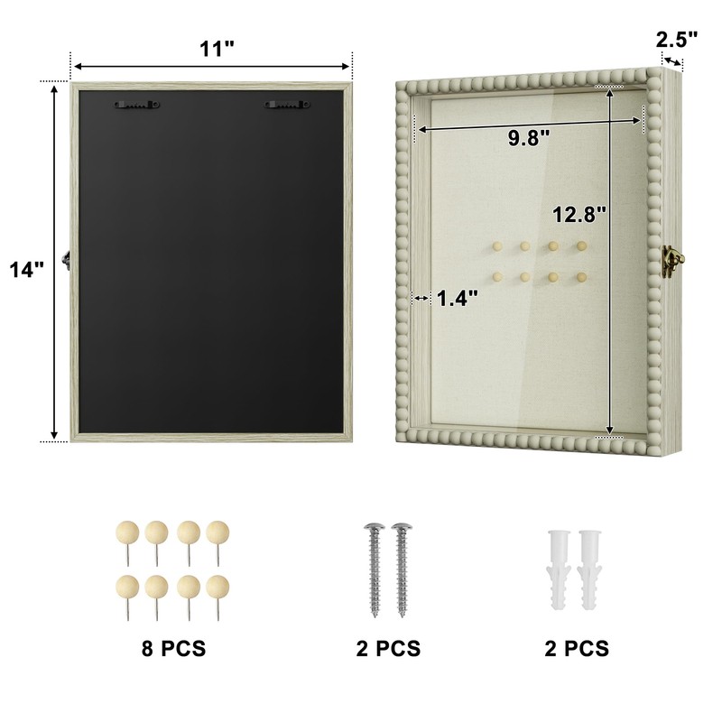 - Memory box - Inside the frame is a linen cloth with 8 pins so you can arrange a personalized collage with photos, cards, concert tickets, medals, dried flower and handicrafts, etc. Prefect way to share your most cherished moments and memorabilia.