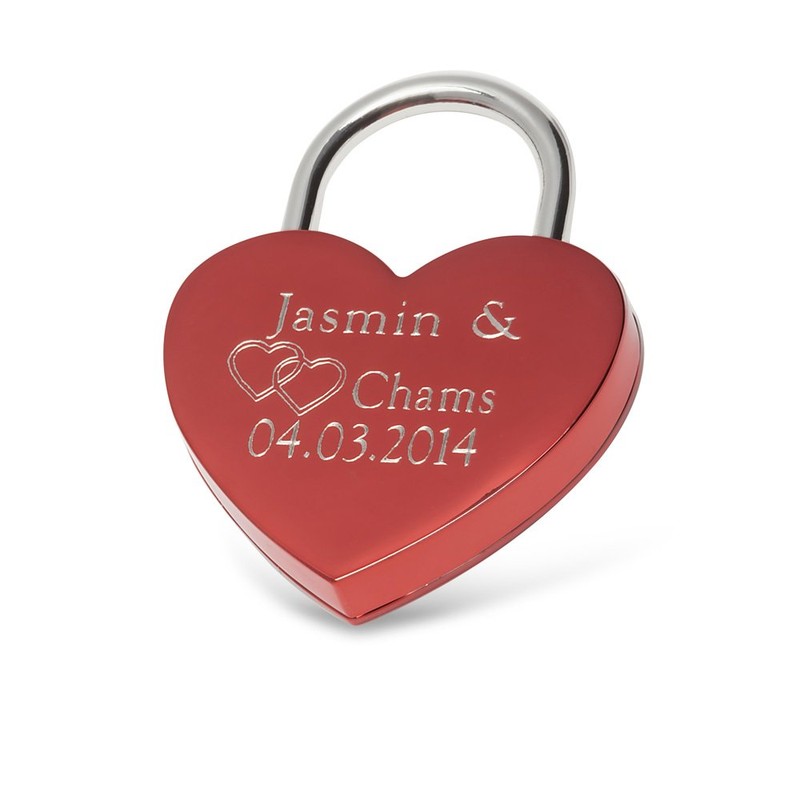 - Box contents: love lock heart red with key, 2 sides engraving according to wishes. (engraving surface: 2 x approx. 40 x 45 mm). Free gift bag