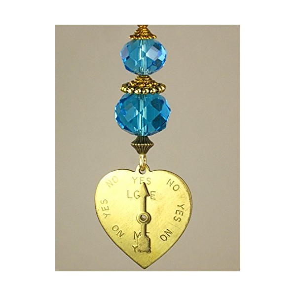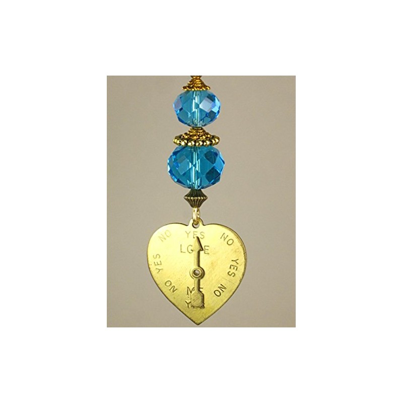 Love Me Love Me Not Heart with Spinner Arrow & Faceted Blue Glass Rear View Mirror Car Accessory Ornament