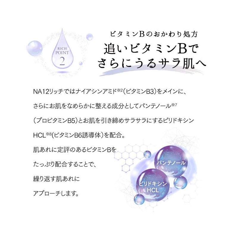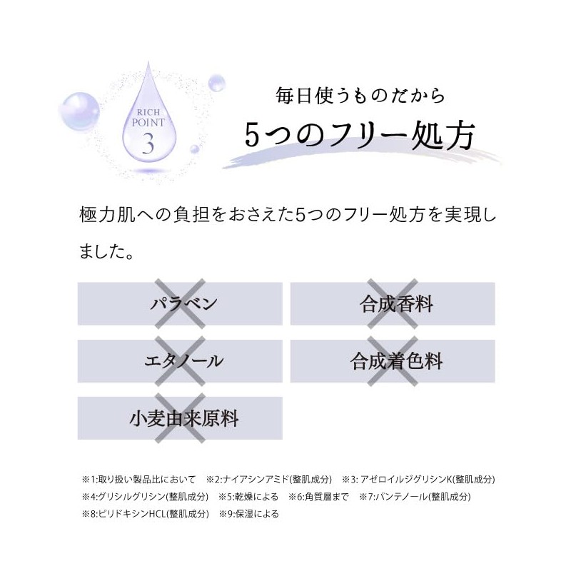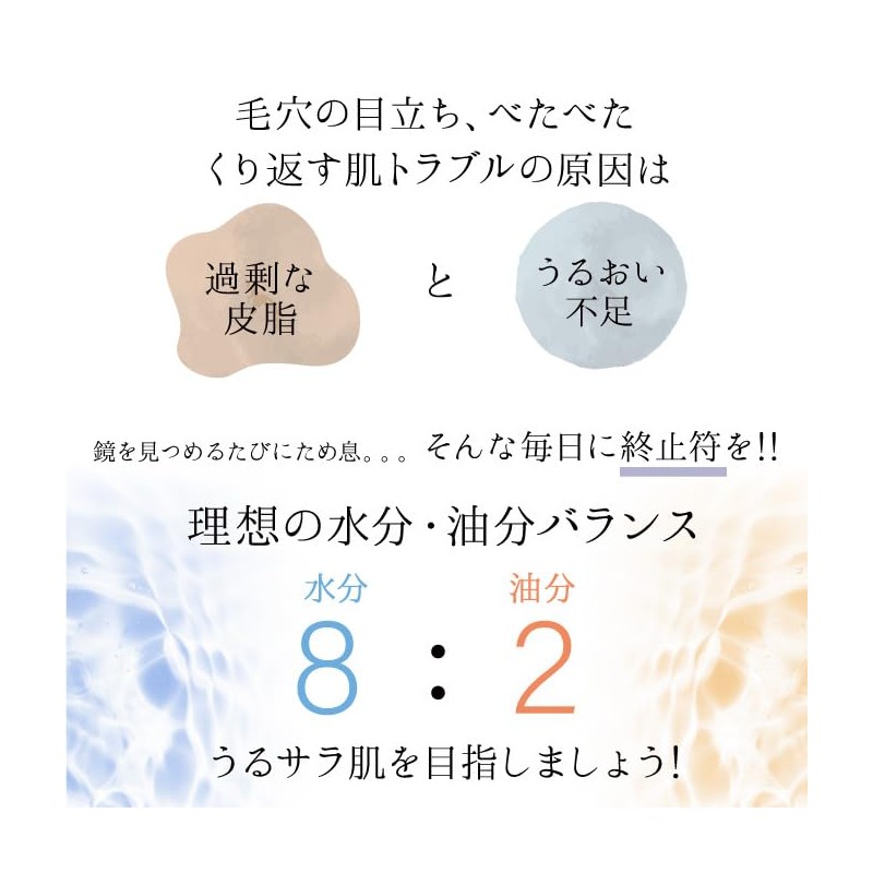 - (Niacinamide (*1) is a highly concentrated ingredient for pore care and oily skins) In addition, it contains a supportive ingredient such as azeline acid derivative (*2) and glycylglysine (*3) that approaches skin problems and leash caused by sebum secretion, resulting in a smooth and clear impression