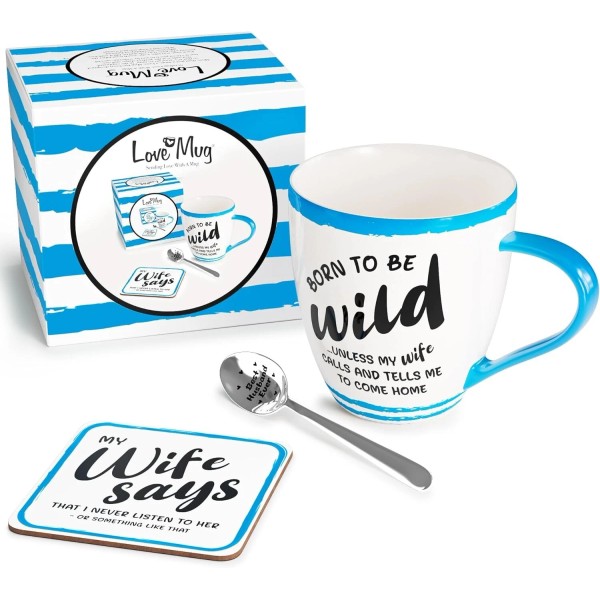 Love Mug®Husband Funny Gift Set Born To Be Wild Mug Coaster & Engraved Teaspoon