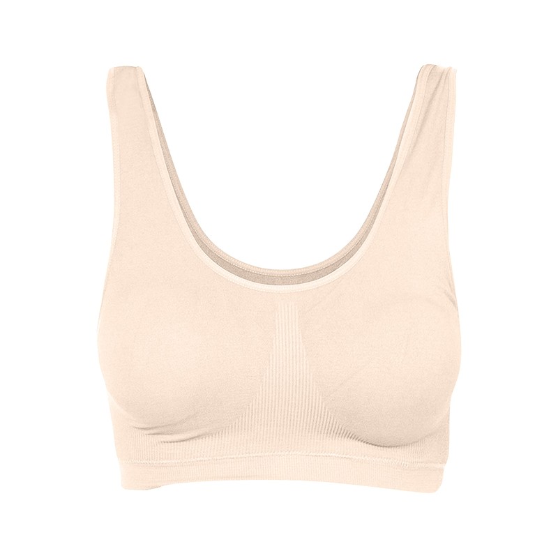 Love My Fashions® Women's Sports Bra Nonpadded 3-Pack Everyday Wear Seamless Super Comfort Sleep Bras Yoga Stretch Crop Top Vest Beige