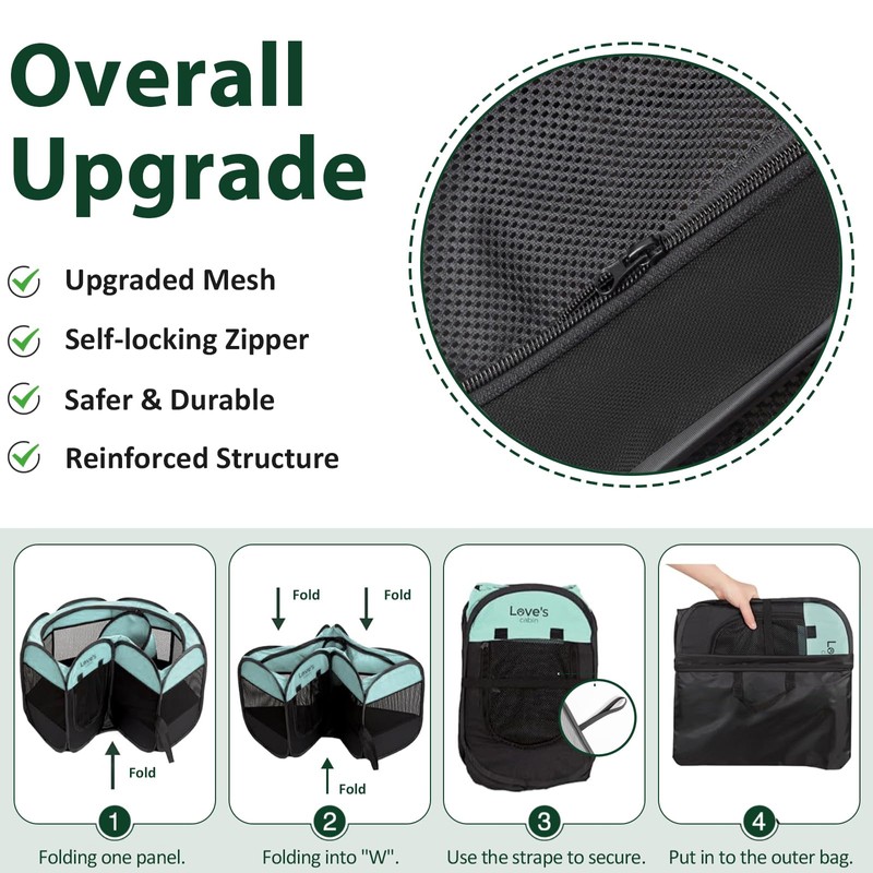 - No Assembly Required and Easy to Store: The Portable Pet Play Pen comes along with a convenient carrying case that can easily store your playpen. It takes seconds to open the dog playpen from folded storage bag, no assembly required. And it's also easy to fold back flat when not in use. Our lightweight portable pet playpen can be used indoors, outdoors, traveling, camping, etc.