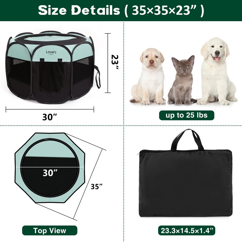 Love's cabin Pet Puppy Dog Playpen, Medium Dog Tent Crates Cage Indoor/Outdoor, Portable Playpen for Dog and Cat, Foldable Pop Up Dog Kennel Playpen with Carring Case, Removable Zipper Top, Green