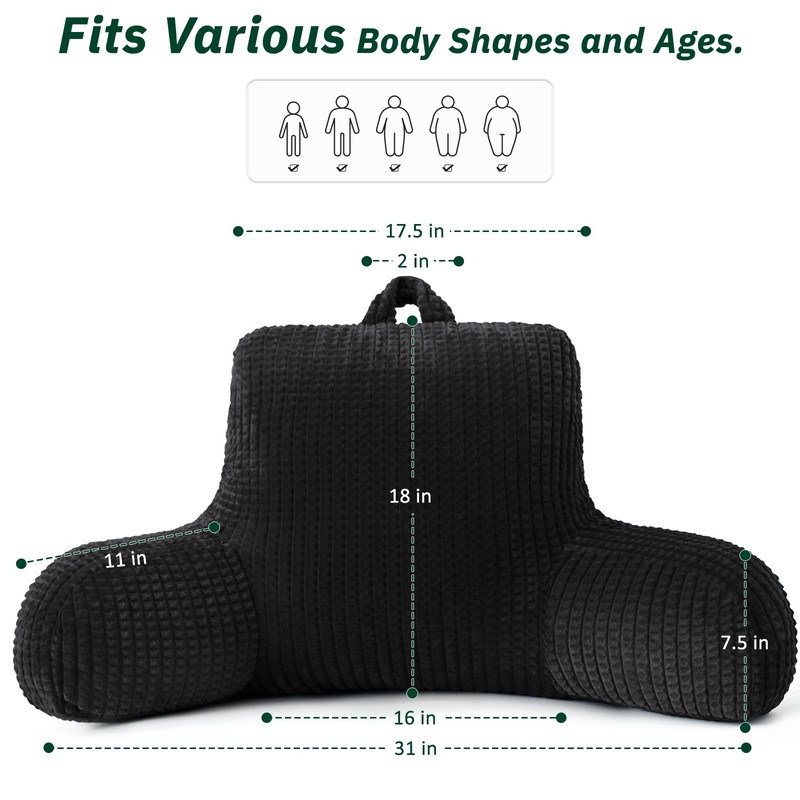 - Ergonomic Support: Designed with a backrest that is 18 inches high, 17.5 inches wide, and each arm extends 11 inches, this reading pillow provides optimal support for your back, neck, and shoulders to alleviate pain and ensure comfort during long hours of reading, watching TV, or working.
