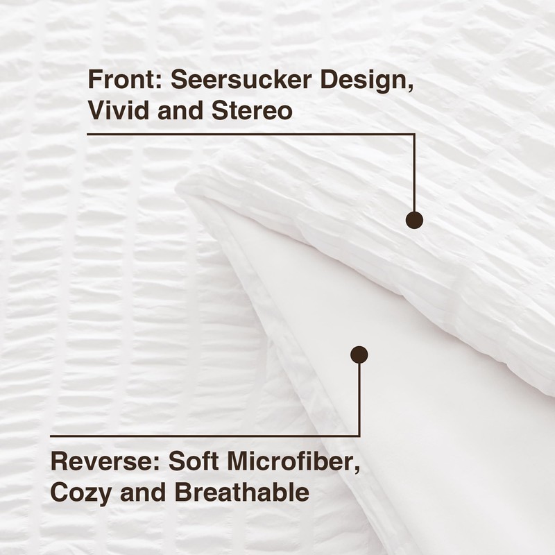 • Exquisite Seersucker Design - This queen comforter set is designed with textured seersucker, slightly pleated to bring vivid and three-dimensional wave visual effect, adding a sense of romance to your bedroom and making you fall in love with this design at first sight. The hidden patchwork design ensures that the filling stays in place and prevents shifting or clumping after washing.