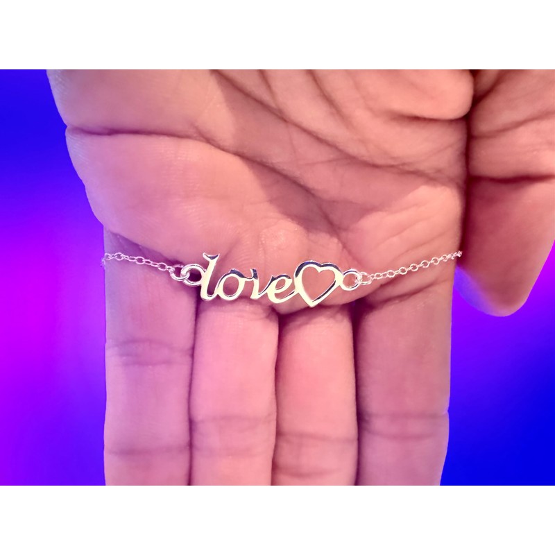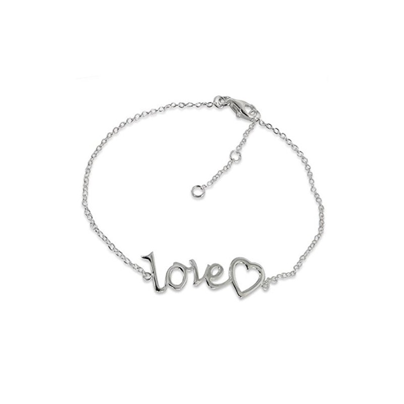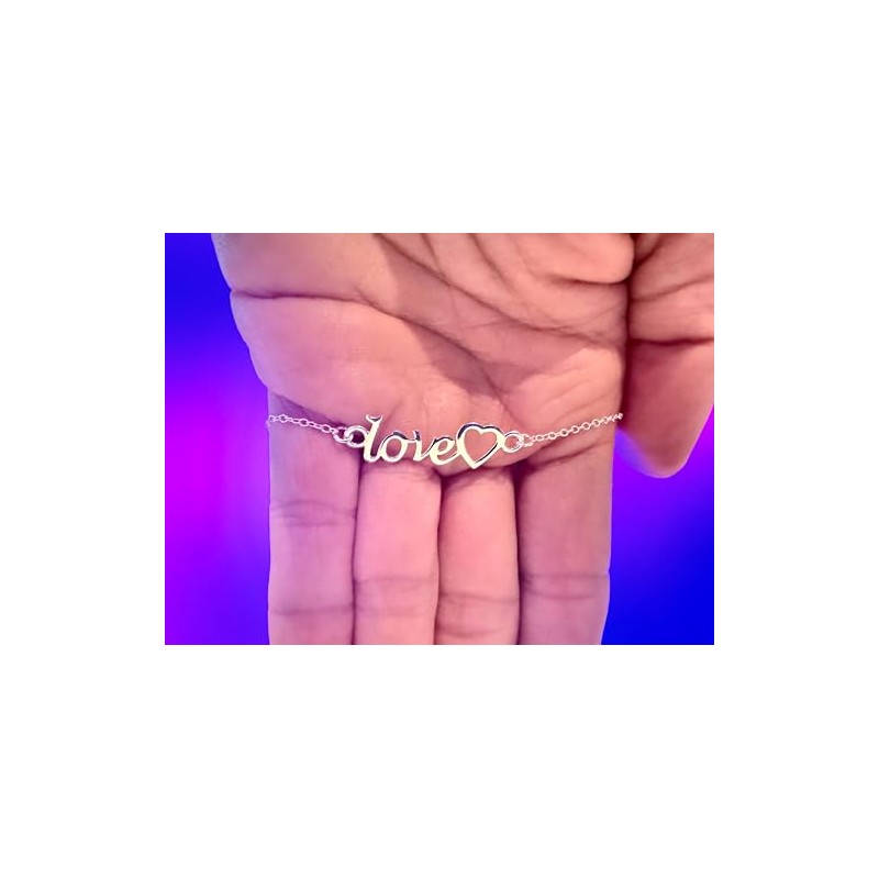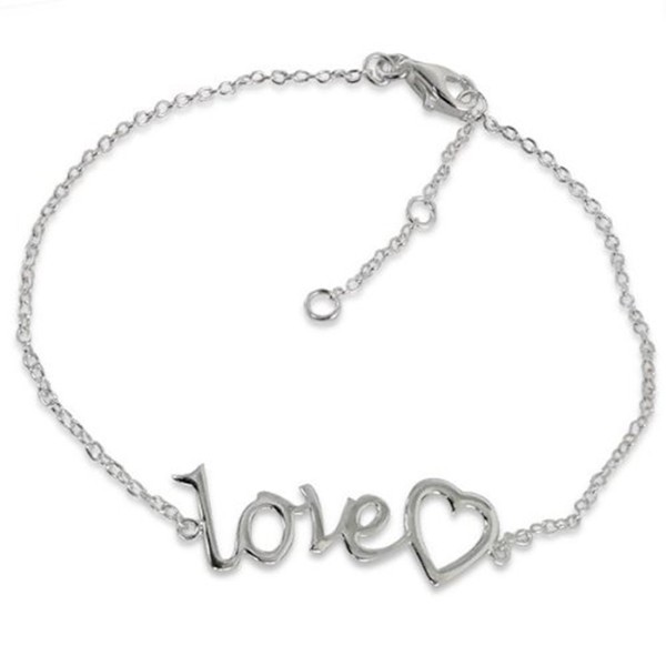 Love Text Word with Heart Charm Bracelet - 925 Sterling Silver