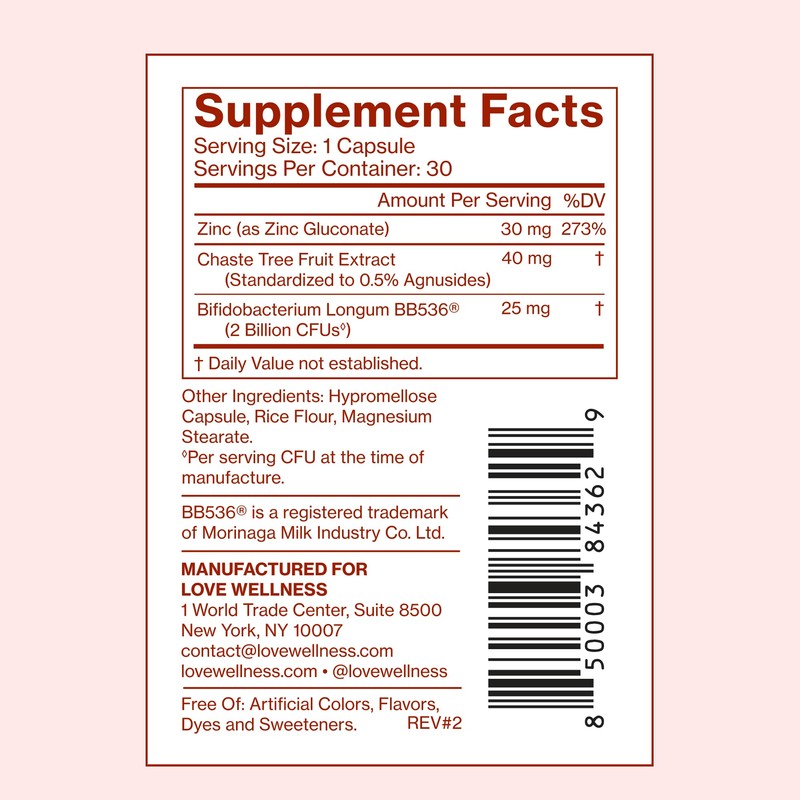 - CLEAR SKIN FROM WITHIN: Love Wellness Clear Skin Probiotics contains 2 billion CFUs of probiotics plus zinc and chaste tree to help clear non-cystic acne and support healthy skin and the gut-skin connection.* This probiotic can also help improve redness and dryness.*