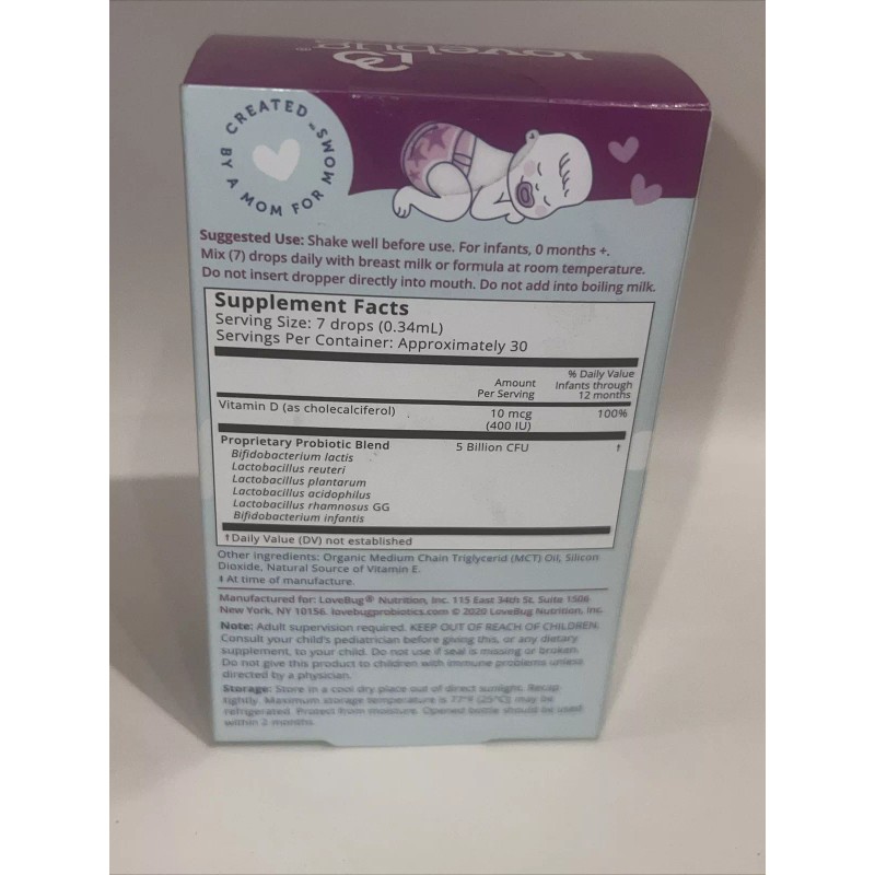 LoveBug Probiotics Baby Probiotic Drops, 5 Billion CFU, 0.34 fl oz (10 ml) Exp: 09/2025 Free Ship