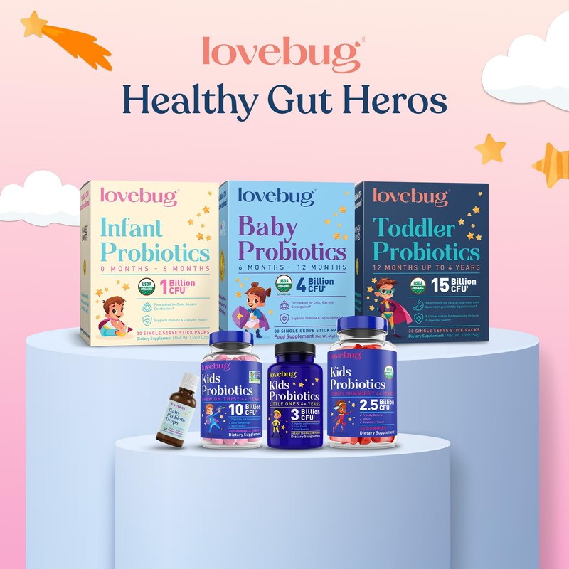 - DIGESTIVE UPSET, DIARRHEA & CONSTIPATION. Toddlers & young children have delicate gut microbiomes that require specific strains of probiotics to restore balance. LoveBug Toddler & Kids Probiotics uses 8 clinically tested strains of probiotics that have been studied for toddlers and children.
