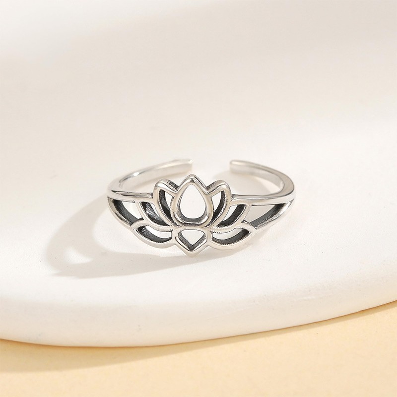 LOVECOM 925 Sterling Silver lotus Flower Toe Rings for Women Retro Adjustable Open Lotu Froral Hope Band Toe Ring Summer Beach Foot Birthday Jewelry Gifts for Mom Daughter (Silver)