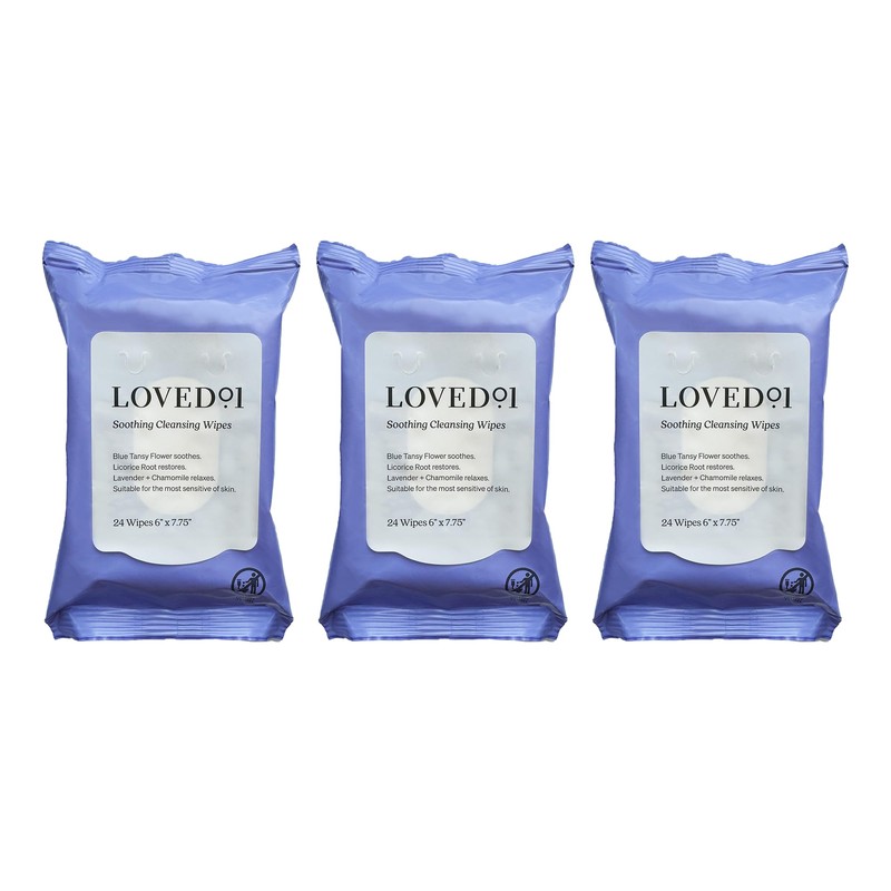 Loved01 Soothing Cleansing Wipes, Cleansing Makeup Remover Wipes for Sensitive Skin with Serum-Like Finish, Lavender Scent, 3-Pack (24 Wipes each)