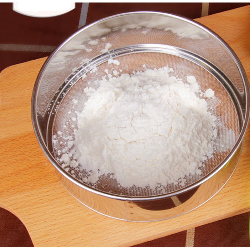 - Diameter: 15CM, height 4.5 CM, 60 mesh,nice size seive to use for flour, baking powder, baking soda, salt,sprinkling cocoa or powdered sugar on cakes etc.