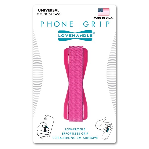LOVEHANDLE Universal Phone Grip for Smartphones & Mini Tablets - Phone Holder for Hand - Wireless Charging Compatible - Made in The USA - Solid Magenta