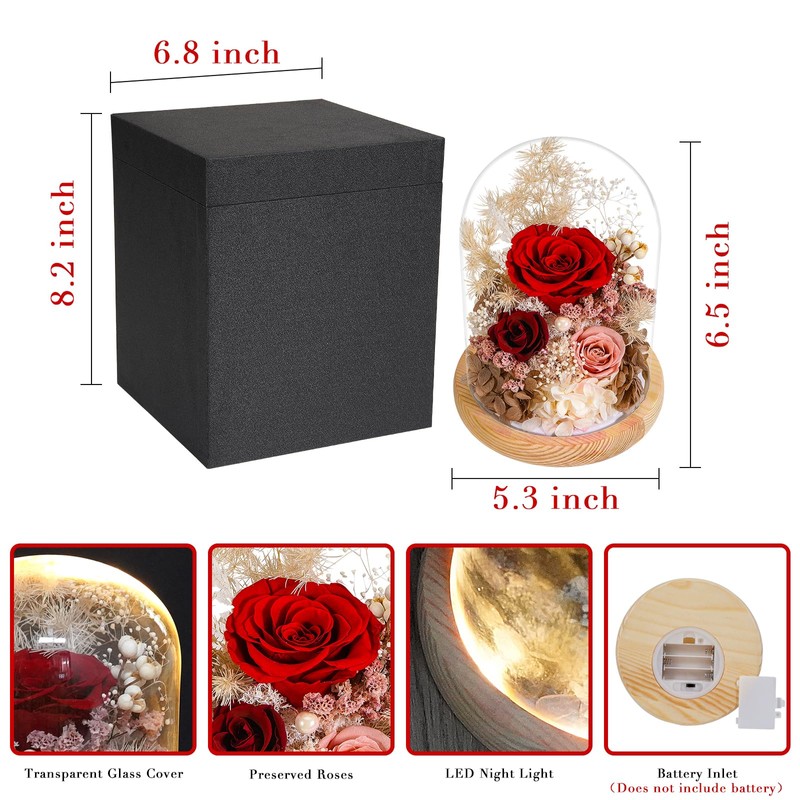 - House Warming Present - The built-in LED lights provide a soft, creating a cozy and romantic atmosphere.Powered by 3 AAA batteries (batteries are not included in the package).Whether for your girlfriend, wife, or mother, or friends who have moved to a new homethis, eternal rose bouquet is a heartfelt gift that expresses deep affection and appreciation.