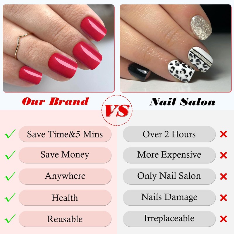 - Re-shapable Square Fake Press on Nails: Short press on nails square artificial fingernails with perfect short length, short glue on nails won't affect daily life and work that you can wear these press on short nails to work, typing, writing, painting, doing house work, playing games. Short length press ons nail square can suitable for any occasions, events and season. Trendy and classic red color press on nail kit help you achieve nail freedom at home.