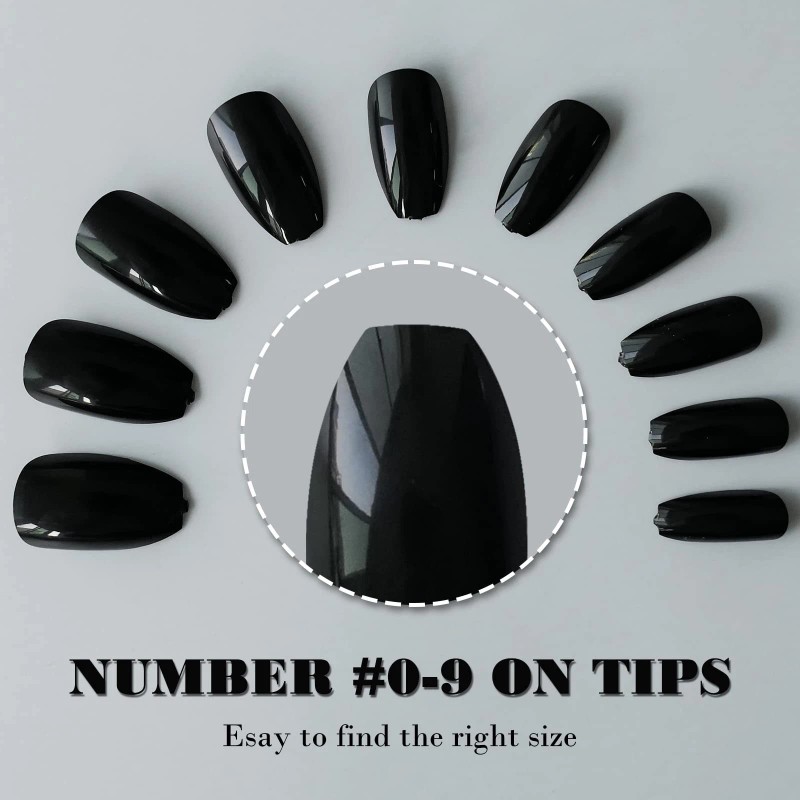 Full cover coffin nails have 10 different sizes (0-9) for different fingers, easy to keep track of, and convenient to choose the most suitable size nail tips for every finger nails. Short coffin nails are suitable for teen girls or kids, and women with medium or small nail beds, colored nails make manicure easier but more stylish.