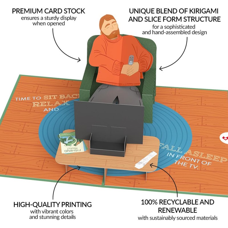 Lovepop Father's Day Pop-Up Card for Him - 3D Greeting Cards for Dad, Husband, Men - Sit Back & Relax - 5" x 7" Card - Blank Notecard & Envelope Included
