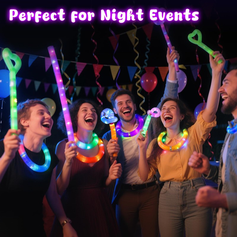 - Parent-Child Interaction - Warm Family Moments: These light up party favors are ideal for family activities, allowing parents and children to bond through creative wearing, interactive games, and more. Whether it’s parent-child games, crafts, or fun moments, the light up pop tubes bring laughter and strengthen family bonds
