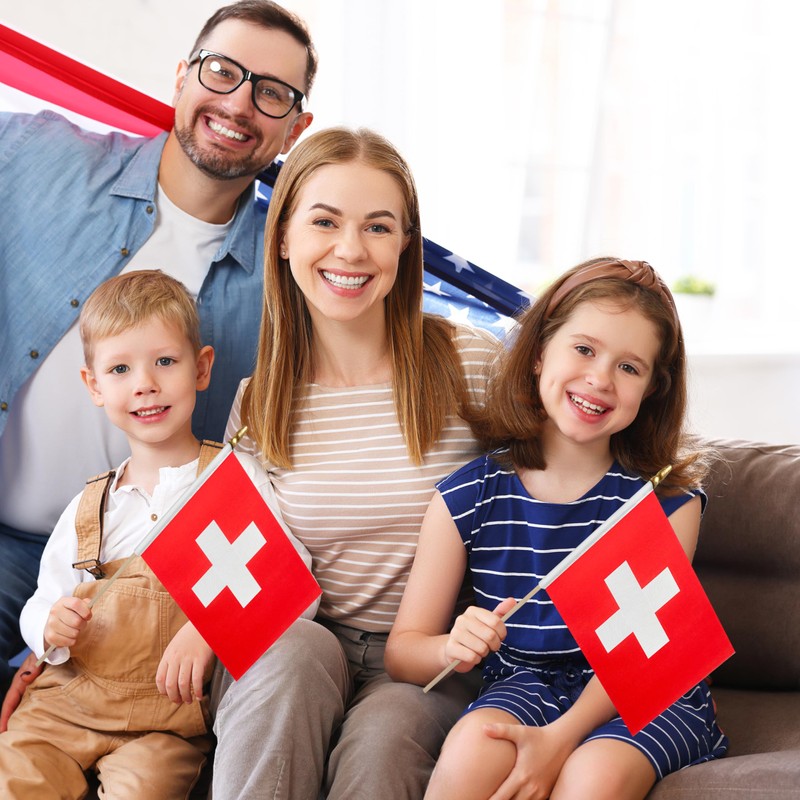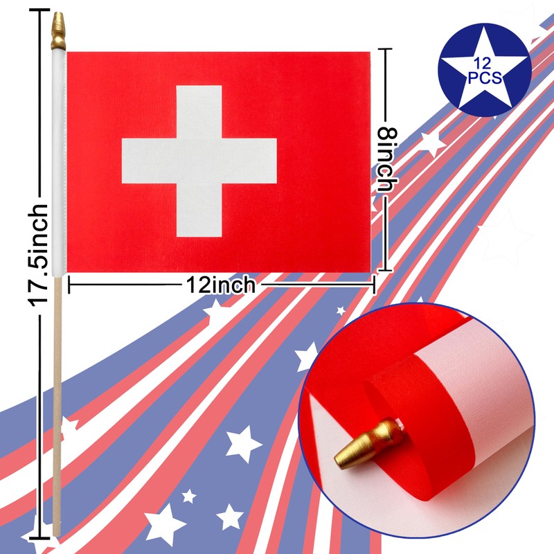 LoveVC 12Pcs 8×12 Inch Switzerland Flags Small Swiss Flag on Wood Stick Mini Handheld Flags Decorations