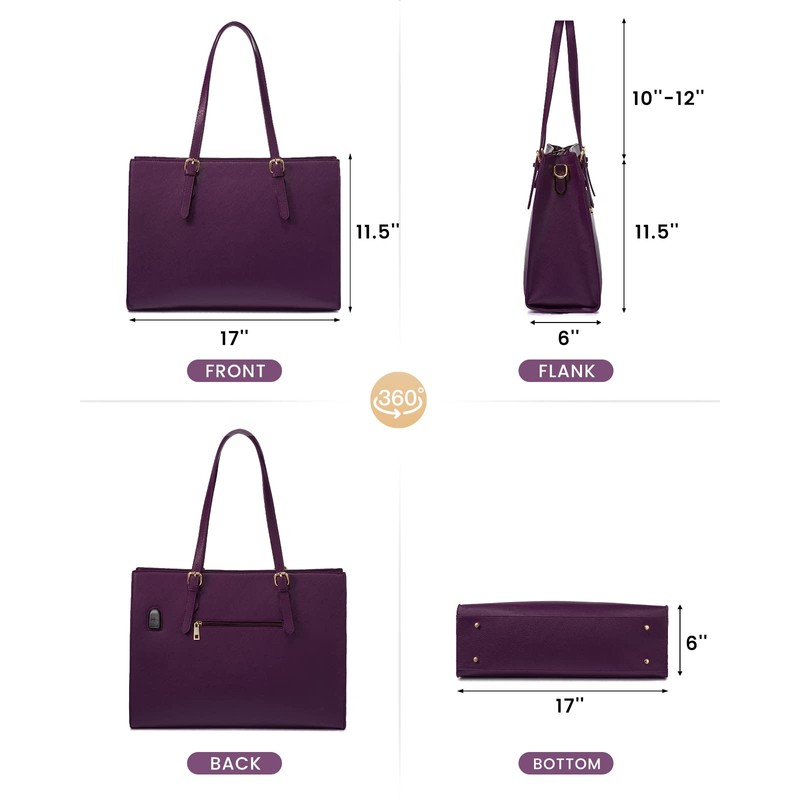 - 【Large capacity & multiple pockets】The Laptop bag for women: 17.1"Lx6"Wx11.5"H. Books, A4 files, umbrellas, earphones, laptops, iPads, etc. can be easily placed in the main compartment. There are 10 built-in pockets, which can be Place small items such as mobile phones, wallets, cosmetics, passports, etc., so that all your items are organized.