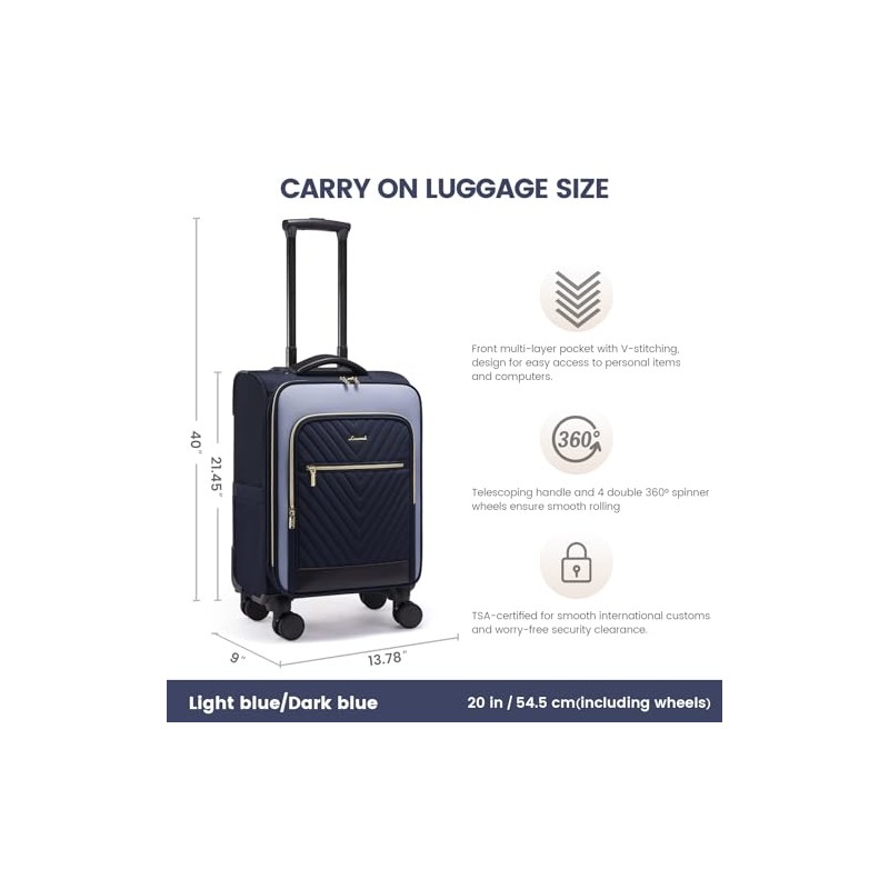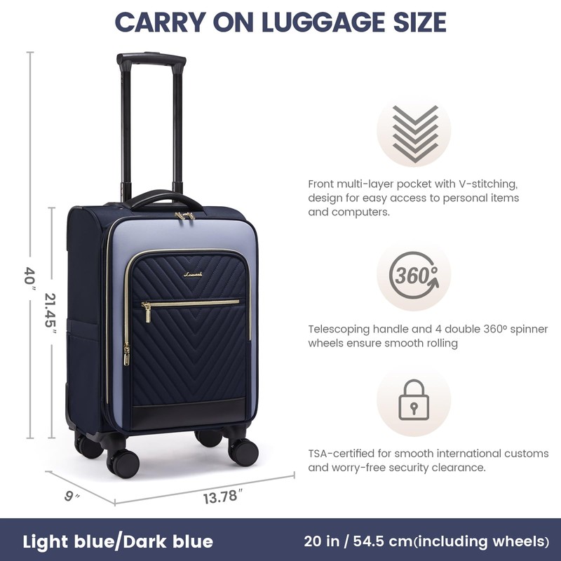 LOVEVOOK Carry On Luggage 22x14x9 Airline Approved,20 Inch Carry-on Suitcase for Women,Softside Suitcases with Wheels,Rolling Checked Luggage with TSA Lock,Lightweight Travel