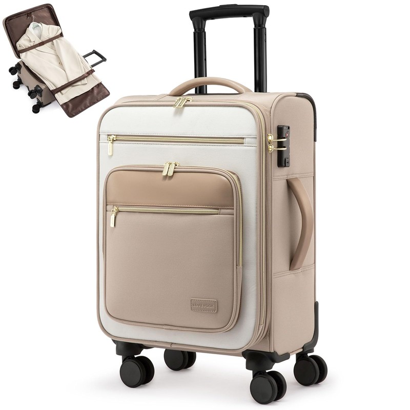 - 【Quick Access & Effortless Organization】This LOVEVOOK suitcase provides you with four front compartments, allowing you to safely store your laptop, iPad, documents, passport, toiletries, power banks and other necessities during your travels. You can quickly get them without opening the main compartment during security checks. The large capacity 45L can not only carry the clothes and necessities you need for a 3-7 day trip, but the interior is also equipped with padded hanger hooks and anti-wrinkle lining to keep your formal attire brand new.