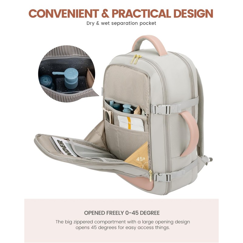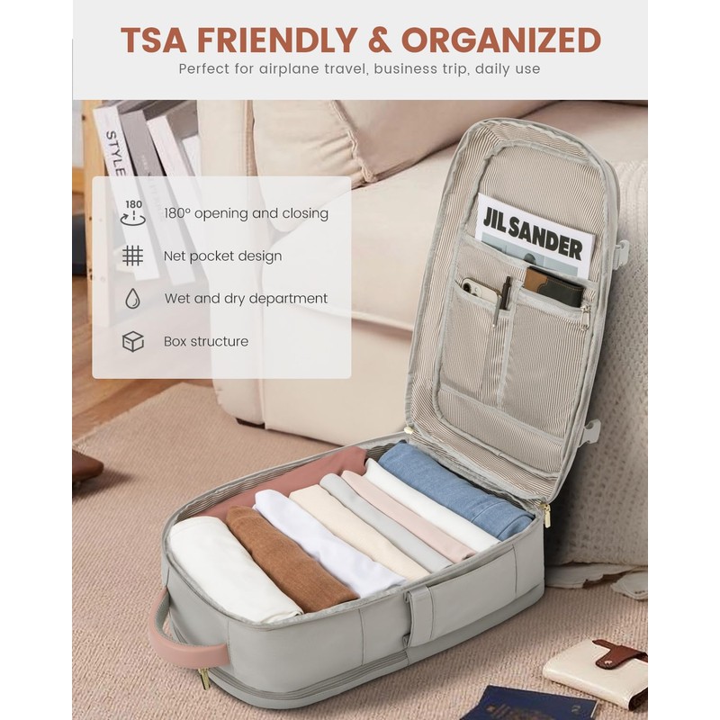 - Airline Approved & TSA Friendly : Experience stress-free air travel with our carry on backpack. Measuring 14.2" x 9" x 19.7", it fits comfortably in overhead bins and under the seat. Designed for quick security checks, it opens 180 degrees, making it the perfect travel companion for your journeys.