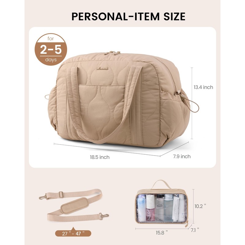 - LIGHTWEIGHT & DURABLE: Crafted from 100% lightweight polyester (just 1.75 lbs). The soft, water-resistant fabric, reinforced stitching on the handles increases the durability of the duffle bag. The LOVEVOOK puffer carry on duffel bag offers a cloud-soft feel, making your travel and daily use comfortable and effortless.