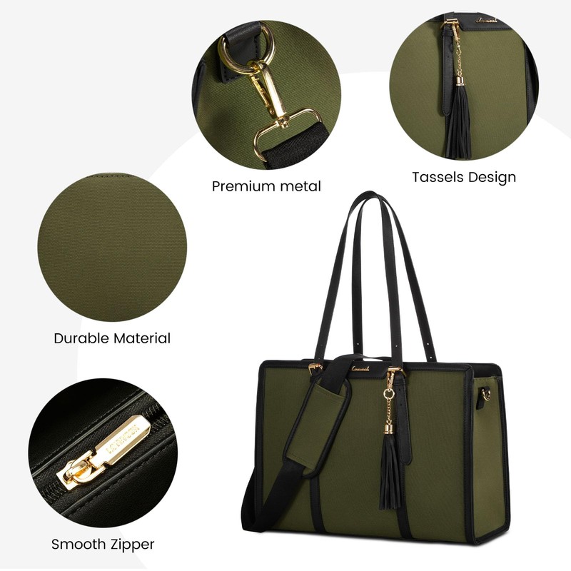 - 【Elegant & High Quality Laptop Tote Bag】 Our laptop purse is made of waterproof and wear-resistant canvas material, high quality PU leather edge embellishment. Tassel pendants add a sense of style to our cute laptop bag, keep our womens briefcase balanced and coordinated to keep it elegant at work and business.