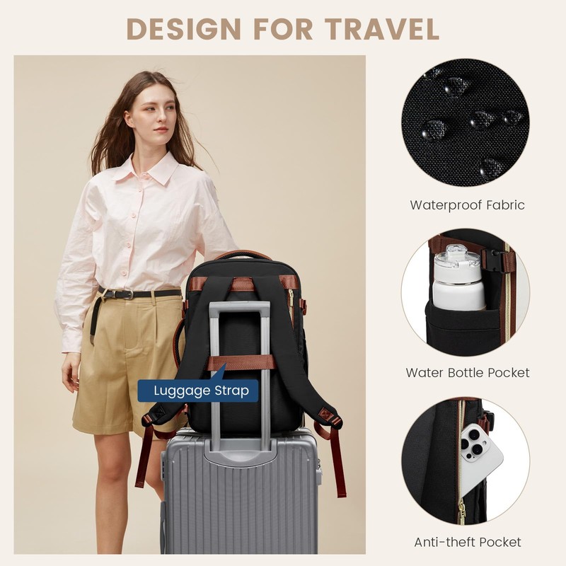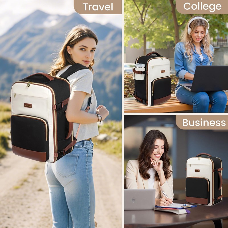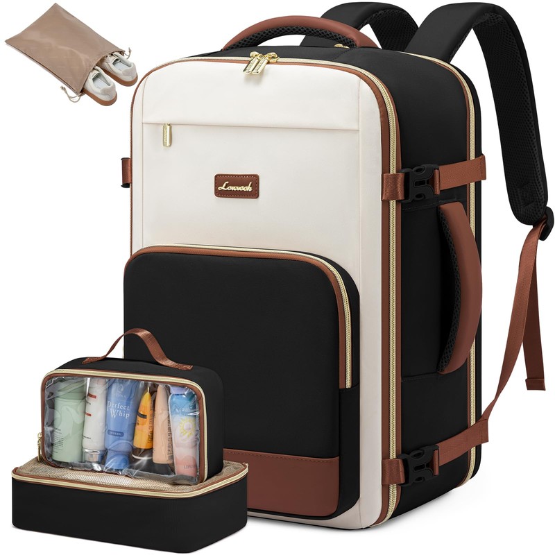 LOVEVOOK Travel Backpack for Women,50L Carry On Backpack Flight Approved,TSA Personal Item Travel Bag Fits 18" Laptop with 3 Packing Cubes,Large Waterproof Weekender Daypack,Beige and black and brown