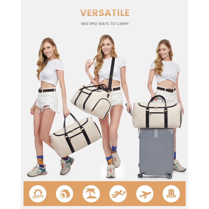 - 【MULTIPURPOSE TRAVEL BAG】: It can be used as a weekender bag, gym bag for women, personal item bag for airlines, duffel bags for traveling, and more. Carry all your travel essentials. Importantly, it can also be used as a Christmas gift, suitable for family, friends, and partners.