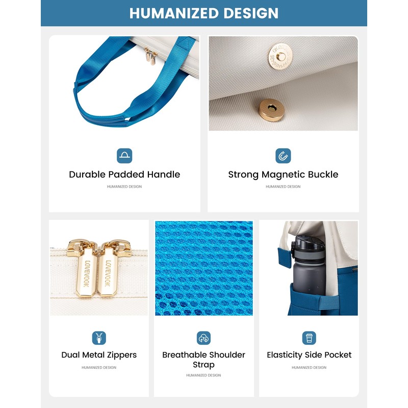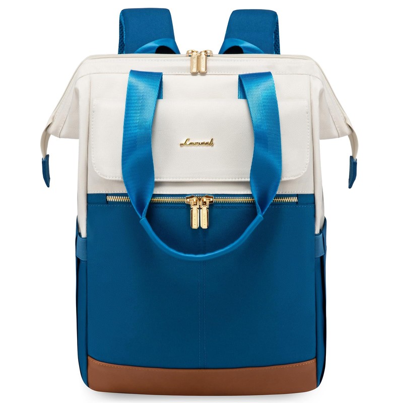 LOVEVOOK Women's Backpack Laptop School Backpack Waterproof, Beige & Blue