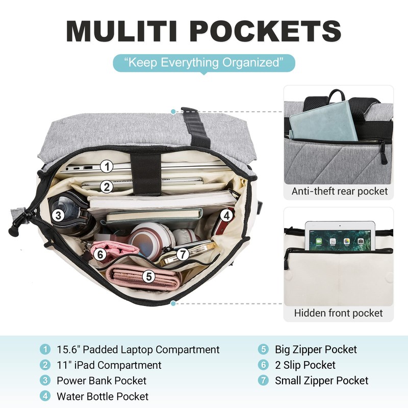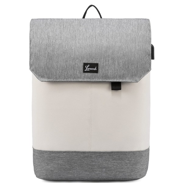 LOVEVOOK Women's Elegant Daypack, Waterproof Daypack with Laptop Compartment 15.6 Inch & Anti-Theft Bag for Trips, University, School and Office, Beige-Grey