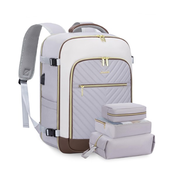 LOVEVOOK Women's Hand Luggage Backpack Large 40L, Light Grey White Coffee